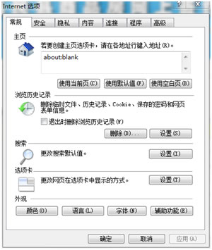 在弹出的“Internet选项”窗口中,如下图所示;