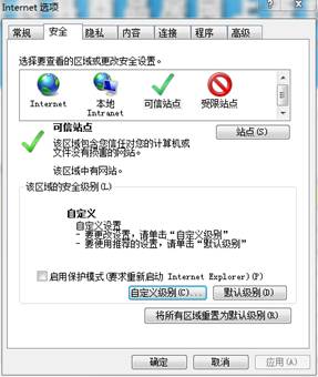 对受信任站点安全设置,设置完成后,点击如下图所示的“站点”按钮